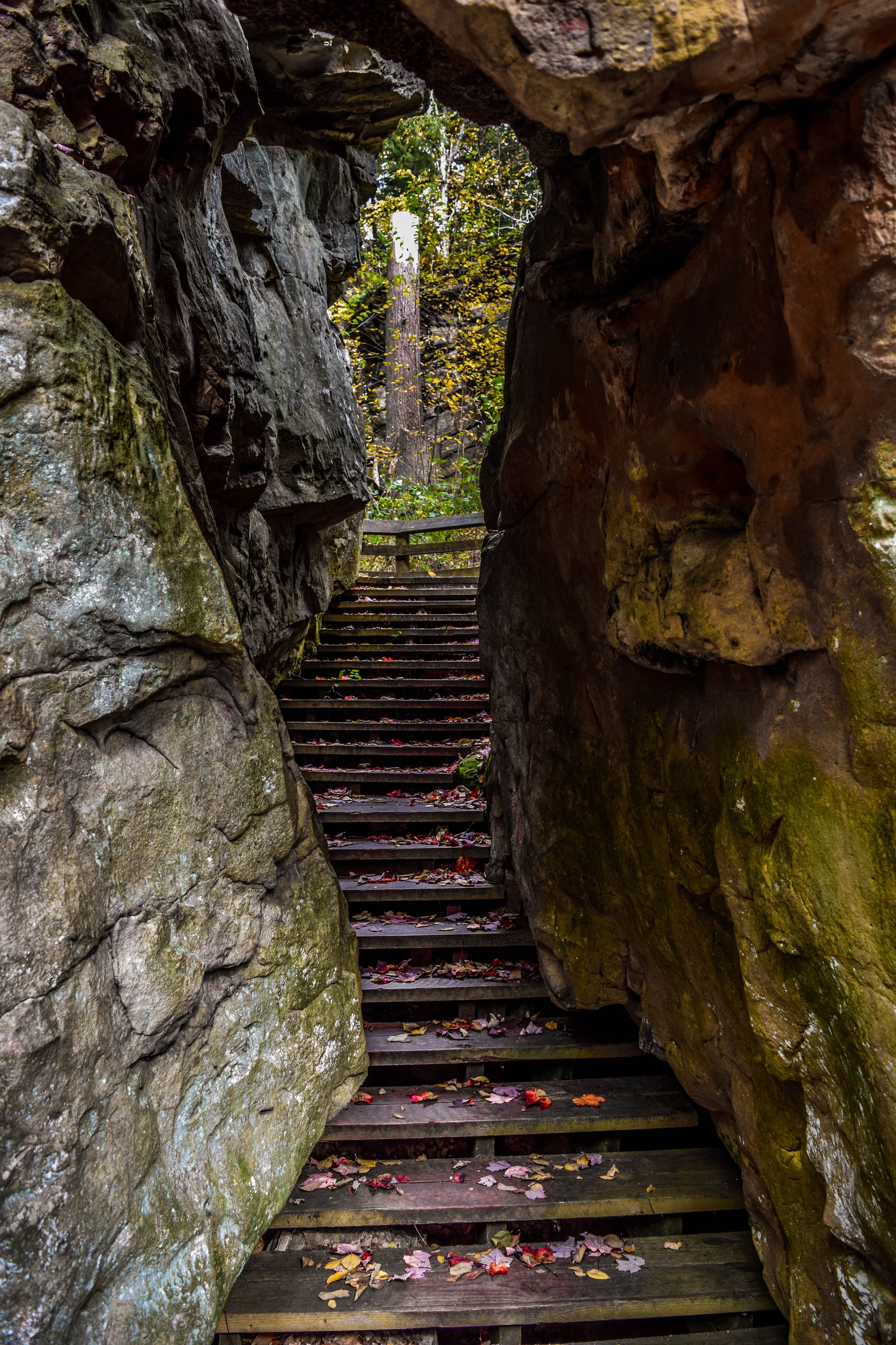 While the park consists of 110 acres, the main attraction is the giant moss-covered rock formations, massive crevices and boulders that make up the boardwalk area. The towering sandstone formations are believed to have formed about 300 million years ago. Besides the boardwalk, it is a completely natural area that does not feel like West Virginia.